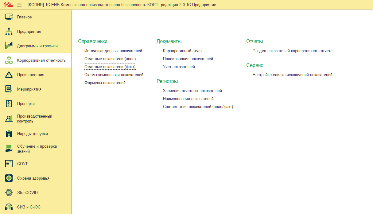 Для закрытия потребностей компаний в рамках подготовки нефинансовой корпоративной отчетности, в рамках решения 1C:EHS Комплексная безопасность КОРП была разработана универсальная подсистема корпоративной отчетности.