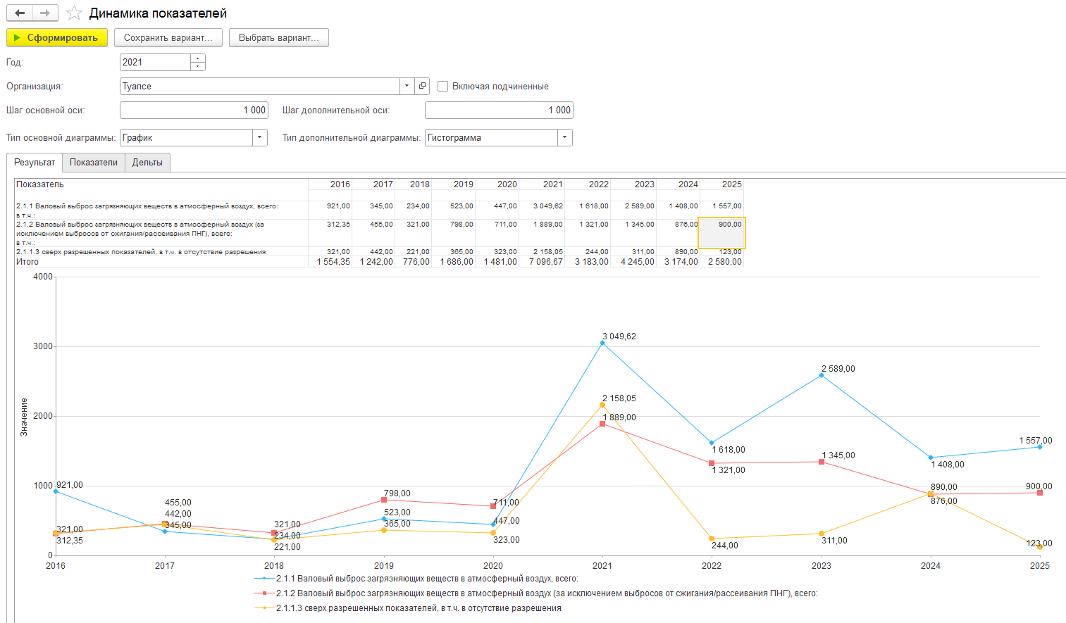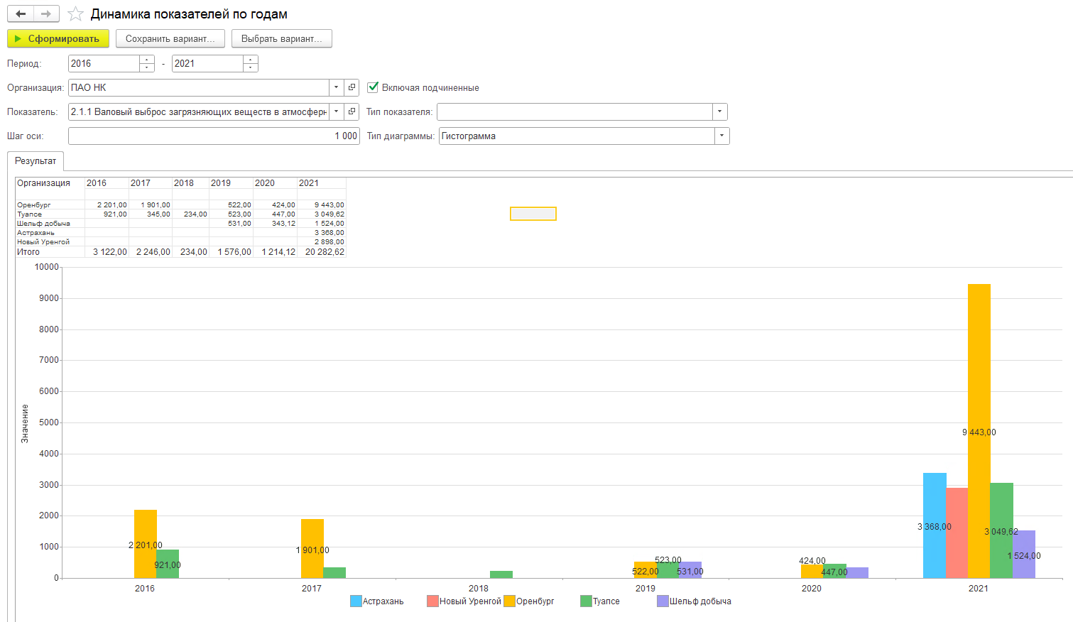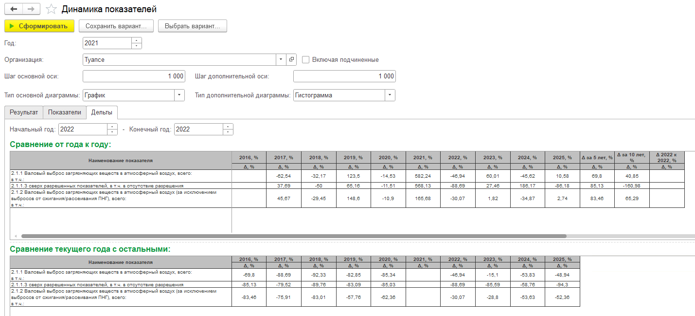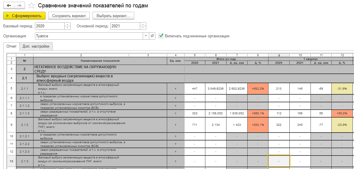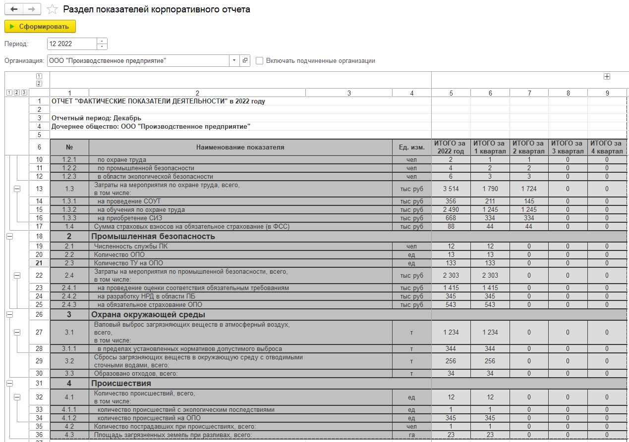 Отчет строится как по отдельным организациям, за которые вносятся первичные данные в системе, так и в совокупности на различных уровнях иерархии организаций, например, в разрезе головной организации или ее холдингов/объединений.