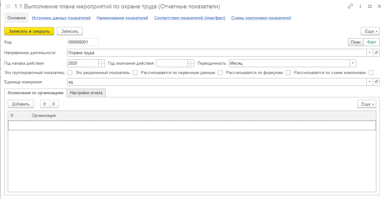 Рисунок 3 – Форма элемента справочника «Отчетные показатели»