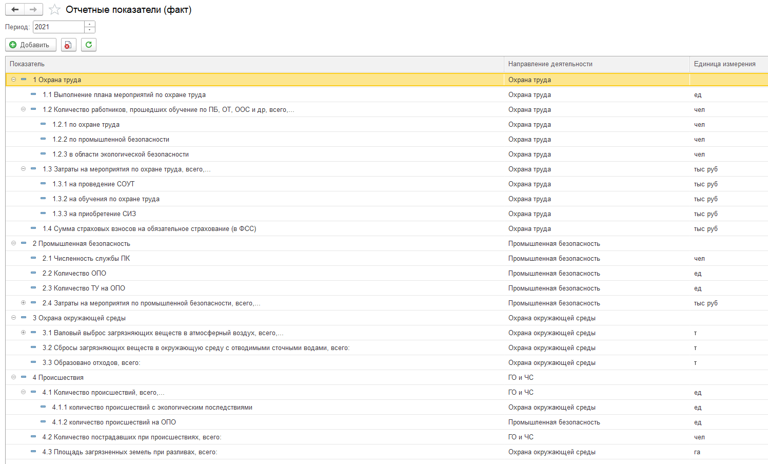 Рисунок 2 – Вид справочника «Отчетные показатели»
