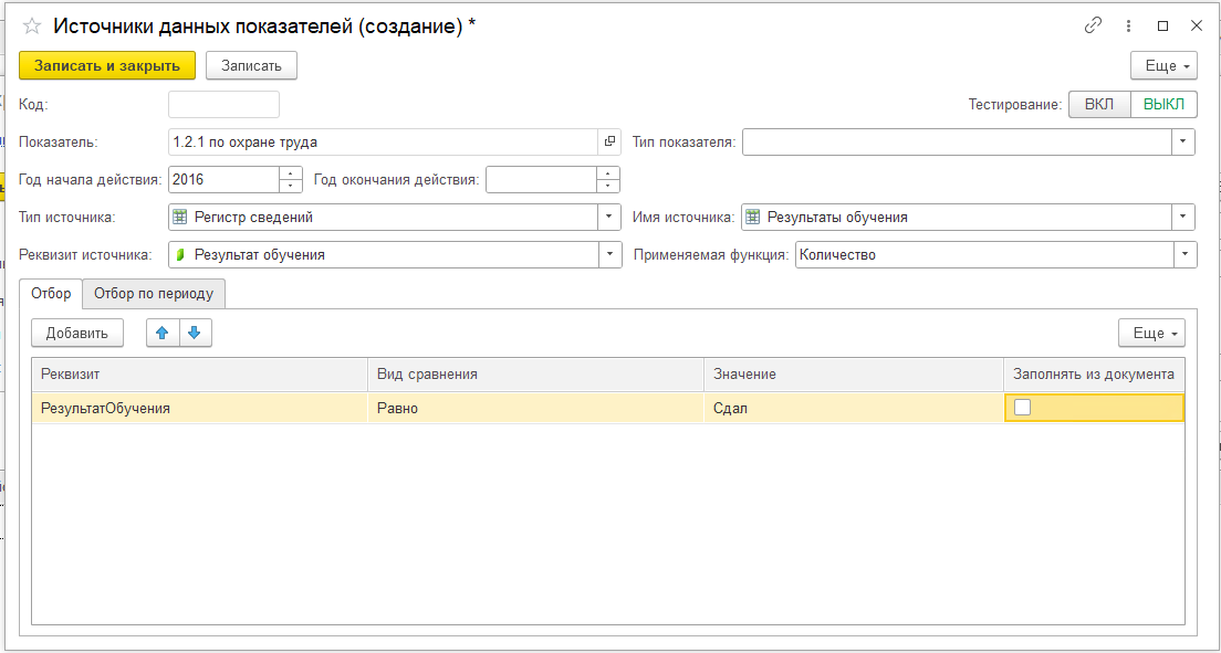 Рисунок 7 – Форма документа «Учет показателей»