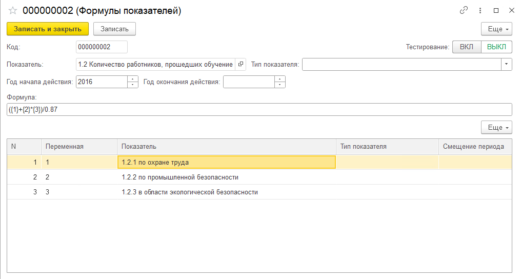 При настройке формул предусмотрена возможность ввода переменных, с указанием показателей отчетности, с использованием математических операторов.