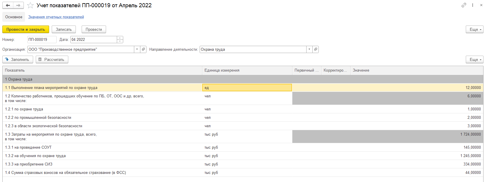 В документе предусмотрена возможность автоматического заполнения данных для каждого показателя, в зависимости от его настроек, с возможностью ручной корректировки для получения итого значения.