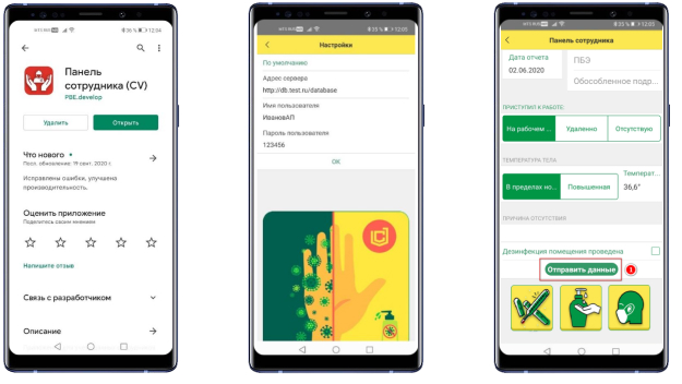 Приложение Панель сотрудника (CV) разработано с целью контроля за состоянием здоровья сотрудников в период пандемии и выполнения рекомендаций Роспотребнадзора по профилактике короновирусной инфекции на рабочих местах. Работодателям рекомендовано обеспечить контроль температуры тела работников при входе работников в организацию (предприятие), и в течении всего дня (по показаниям) с обязательным отстранением от нахождения на рабочем месте лиц с повышенной температурой тела. Измерение температуры каждому работнику при входе на предприятие и запись результатов в журнал приводит к массовому скоплению сотрудников на контрольно-пропускных пунктах предприятий и входе в организации, привлечению дополнительных сотрудников.