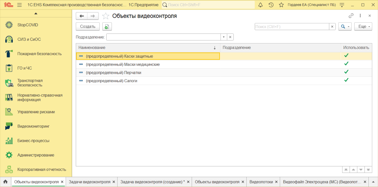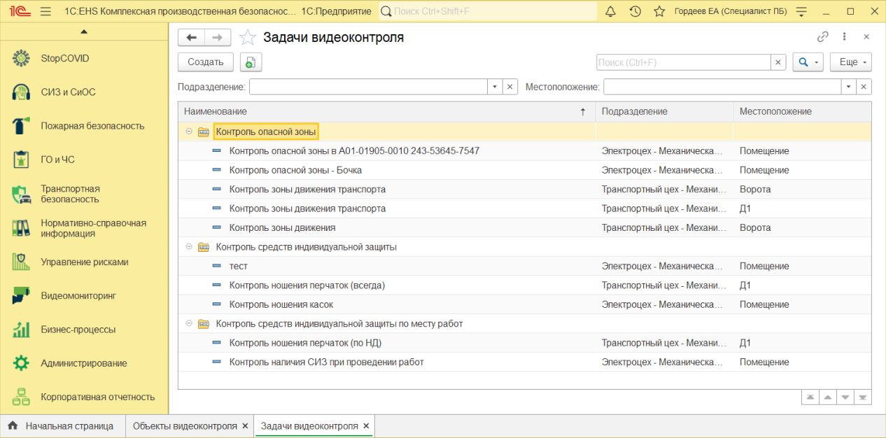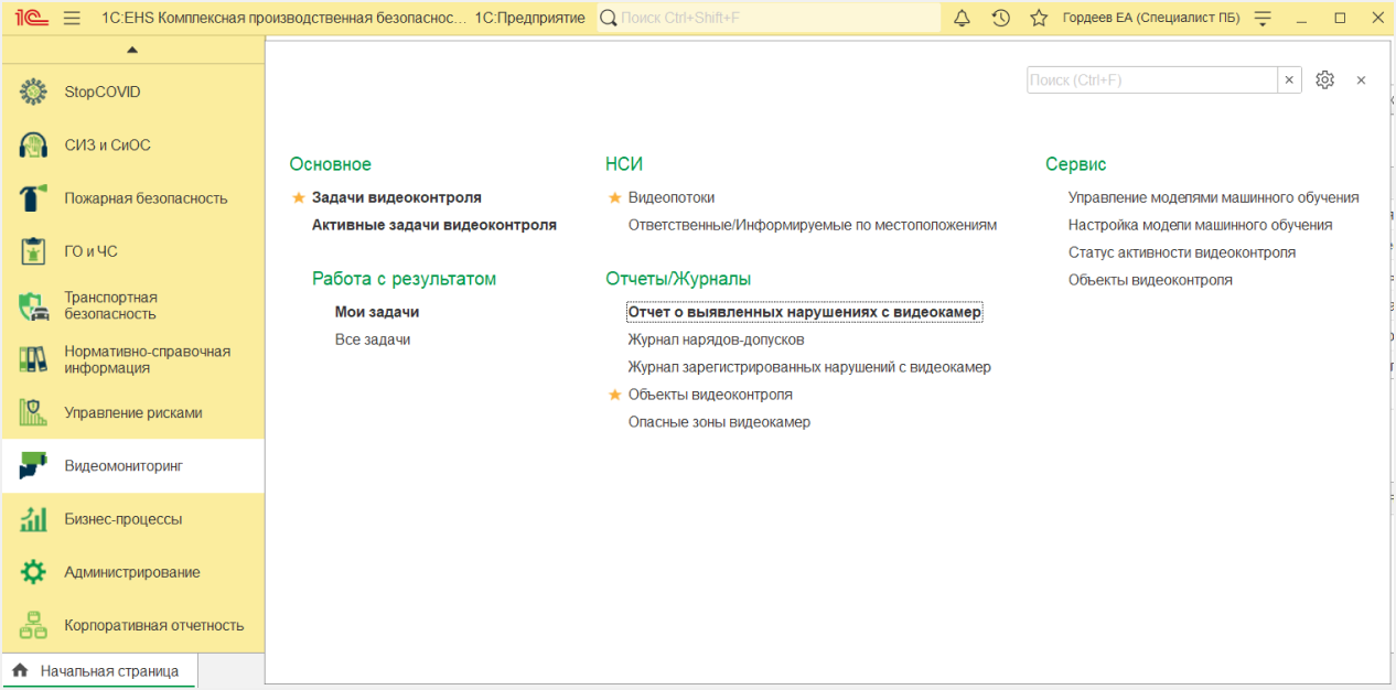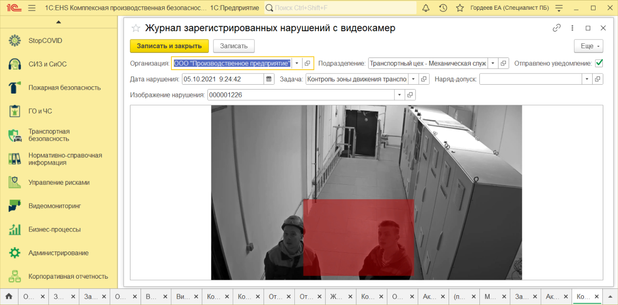 Так как контроль выдачи СИЗ и контроль организации работ уже реализован в нашем продукте «1С:Предприятие 8. Производственная безопасность» систему видеоаналитики с использованием искусственного интеллекта было принято строить на ее базе.