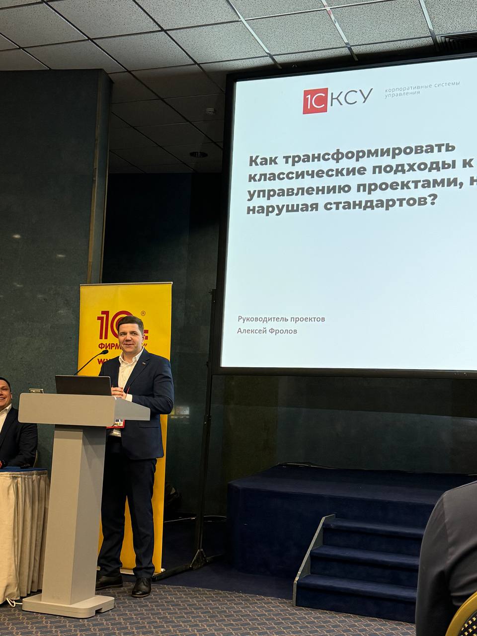 Руководитель проектов 1С-КСУ Алексей Фролов выступил в секции «Управление проектами и консалтинг на корпоративном рынке»». В своем докладе он поднял важную тему трансформации классических методологий (PMBoK) под реалии корпоративного рынка.