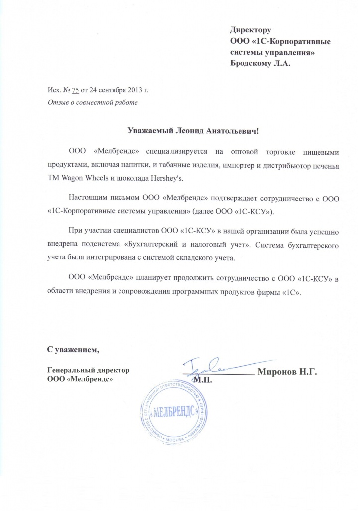 Внедрение подсистемы «Делопроизводство и документооборот» на базе программного продукта «1С:Документооборот» в ООО «Мелбрендс».